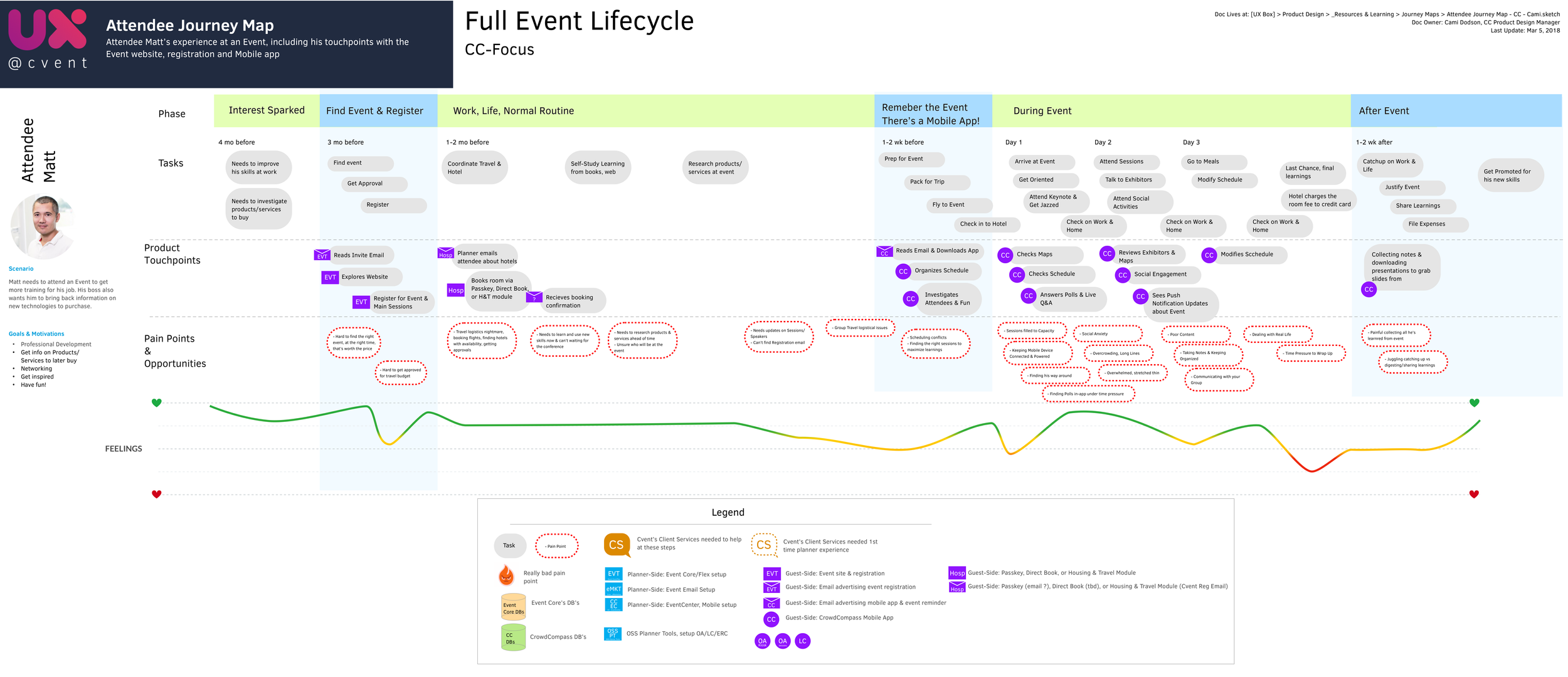 Visualized the full planner and attendee experience to identify pain points and prioritize improvements across touchpoints.