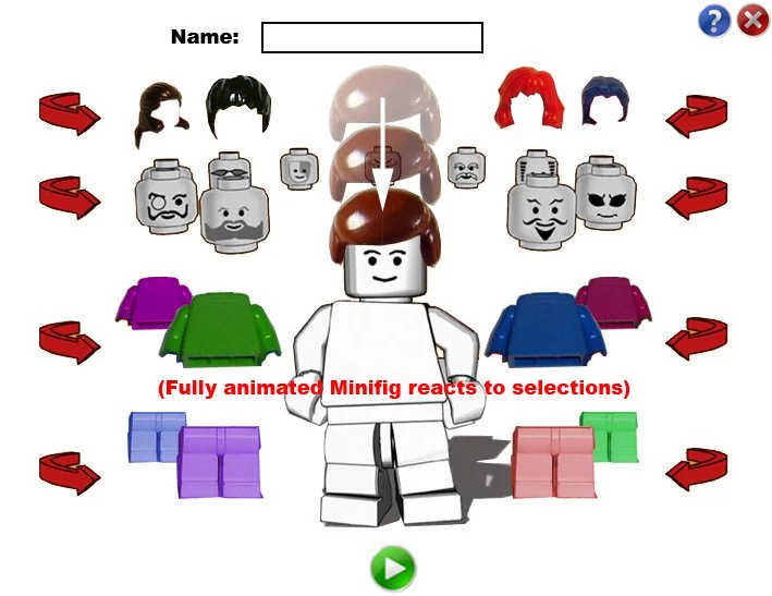 A guided, interactive experience for kids to build and customize their in-game LEGO minifig from hair to pants.