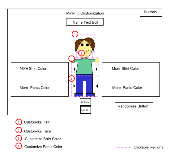 Second only to brick building, this was the most expensive UI in the game and saw the most user testing. Many 8–12 year olds could complete it unassisted, yet some usability issues persisted—showing the challenge of intuitive 3D customization for kids.